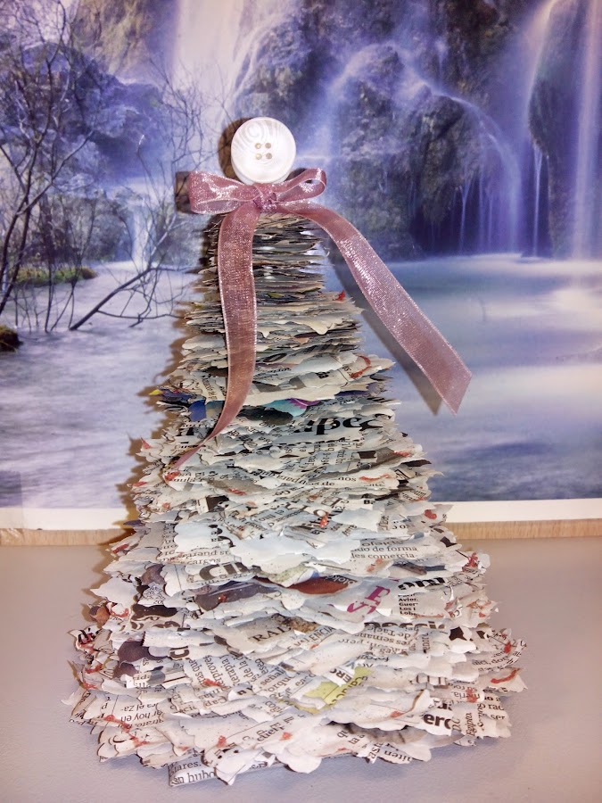 Otra cosa que me encanta hacer son decoraciones para el despacho, para casa, etc. Cambiar según las estaciones y celebraciones. Por ejemplo, uno de los momentos del año más inspiradores es la Navidad, ¿no os pasa? Este arbolito fue de un año en que decidí que todo debía ser de periódico. Fue fantástico.
