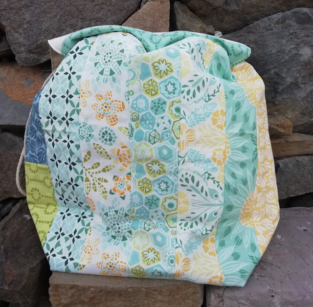Como os cuento, mi hermana pintó en loneta a Curri, con idea de que yo cosiera algo. Maite me contó que había pensado en una bolsa neceser, de gran tamaño y que llegado el caso, sirviera para algo diferente a bolsa de aseo. Así que preparé una taleguilla uniendo telas de un Jelly Roll que me recuerda a los tonos de Curri, con su manchita naranja incluida, le puse un fondo ancho, bolsillos interiores y una solapa con la ninfa como protagonista.