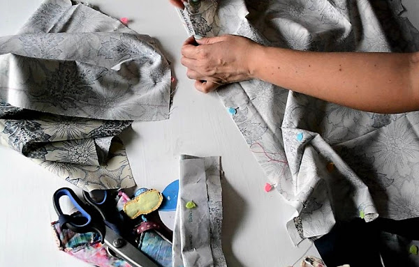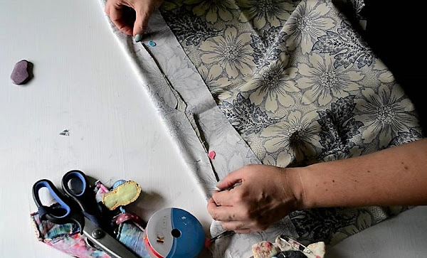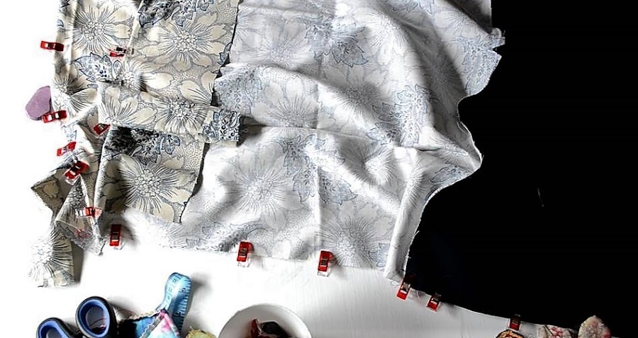 - Tela elegida, yo voy a combinar dos telas, una estampada de Dawanda y una azul de punto roma