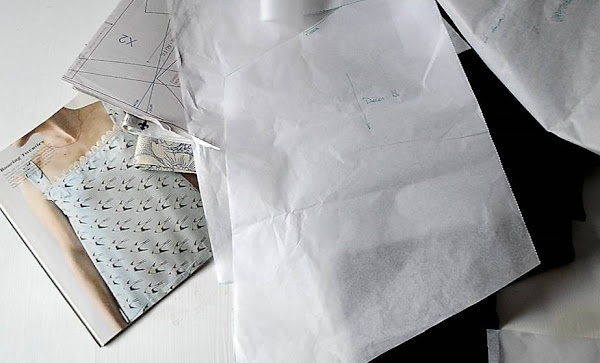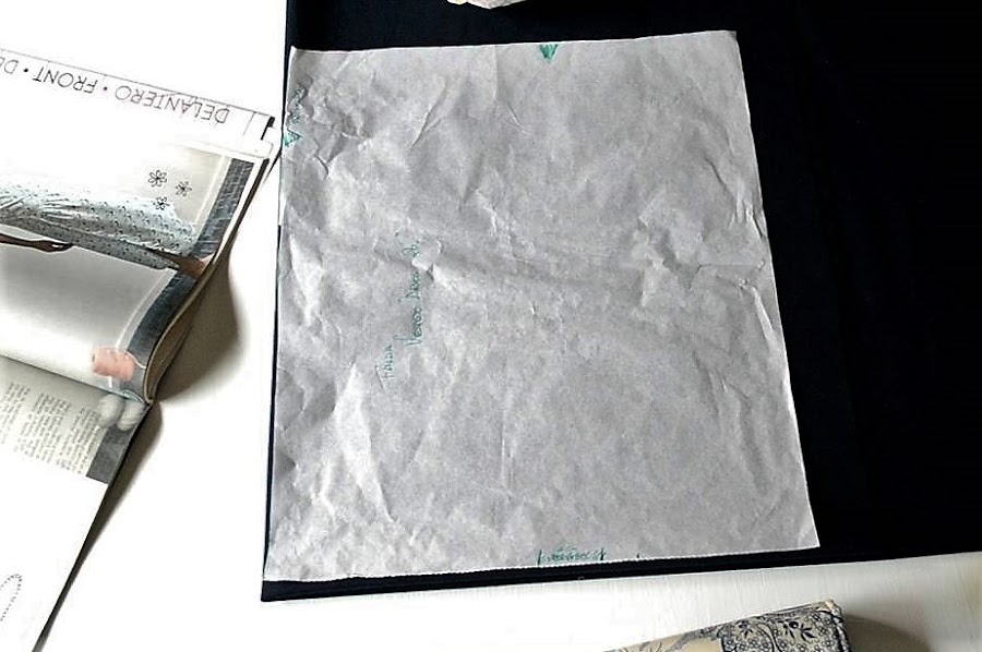 Para hacer nuestro vestido lo primero será copiar en una hoja de patrón los patrones de la revista. Os recomiendo mirar bien la talla, pues no se que es lo que hice yo, no se si me confundí de talla o me confundí al cortar en la tela, pero saque una talla que me estaba enorme y que finalmente solucione como vais a ver.