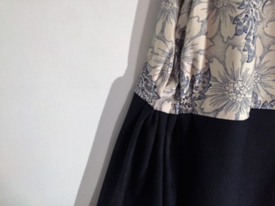 La siguiente costura será las pinzas delanteras y después uniremos la falda a la parte superior, del delantero y de la espalda, teniendo en cuenta que la parte de la falda es más ancha, tiene que tener o bien un frunce que nos viene marcado en patrón, para ajustar al ancho de la parte superior o bien unos pliegues o pinzas, como más os guste. Yo elegí unos pliegues.
