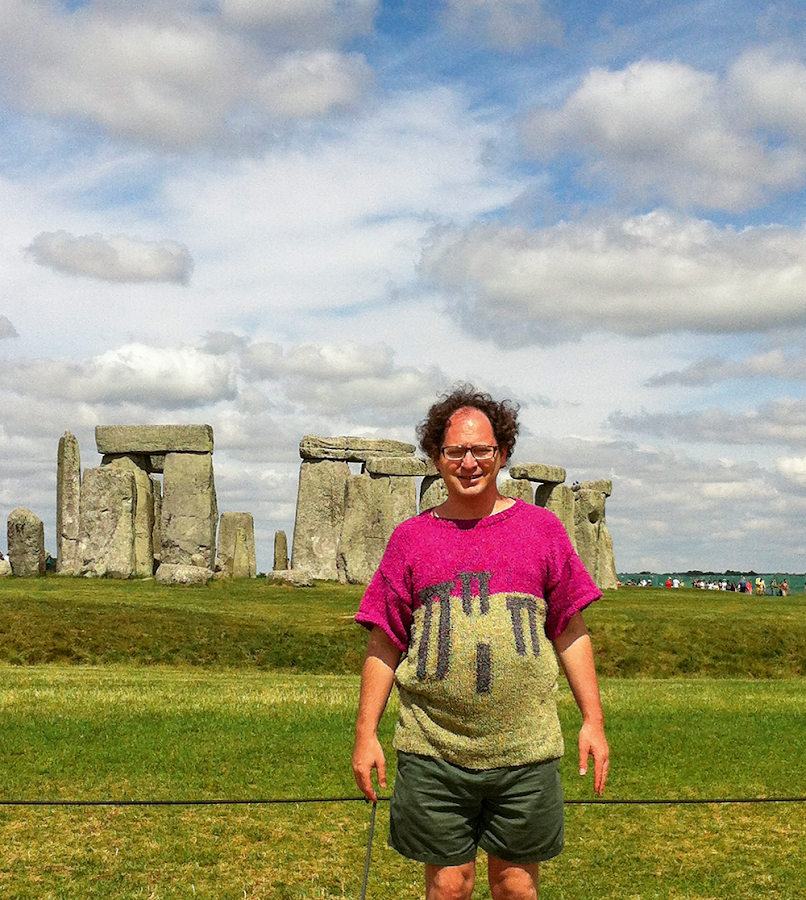 Empezó a tejer en 1999, pero no fue hasta algo más tarde cuando se le ocurrió la genial idea de emparejar su hobby con los viajes de sus vacaciones. Poco a poco fue haciendo de sus jerséis unos souvenirs de lo más entrañables. Su colección abarca desde las Cataratas del Niágara, las famosas piedras de Stonehenge o las islas Canarias hasta paisajes más livianos como un día de partido en el béisbol o la clásica carretera desértica de Nuevo México.