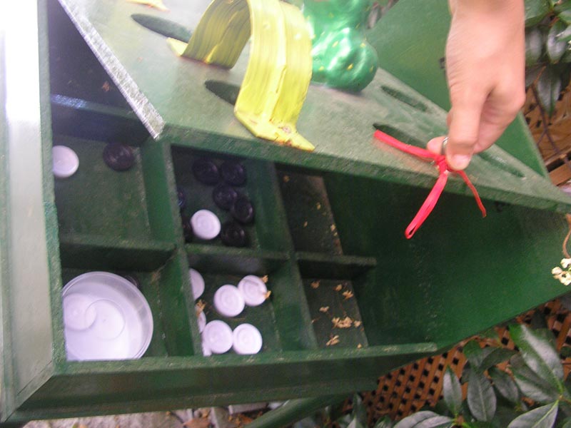No la encontraron (es lo que pasa cuando se empieza la casa por el tejado), entonces hicieron la rana de barro, se coció y la pintaron con acrílicos .
