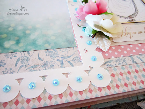 El marco está decorado con unos cristalitos de color azul que dan mucho brillo y adornan la página.