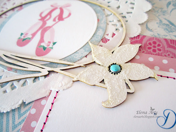 La flor de chipboard está cubierta de glitter y tiene un brillo espectacular, no es muy llamativo sino un efecto sutil y elegante.