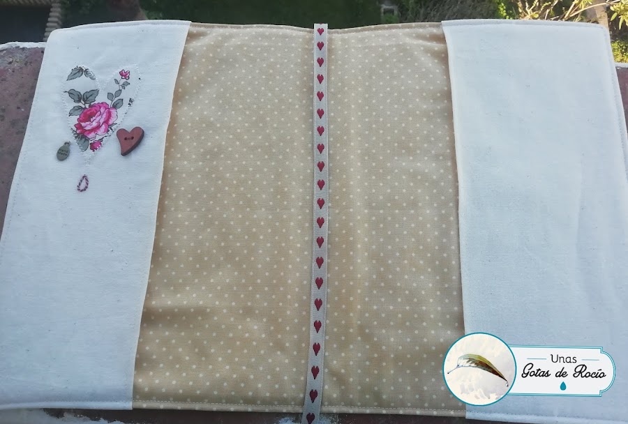 El interior en lienzo, el mismo estampado de lunares y cinta marcapáginas.