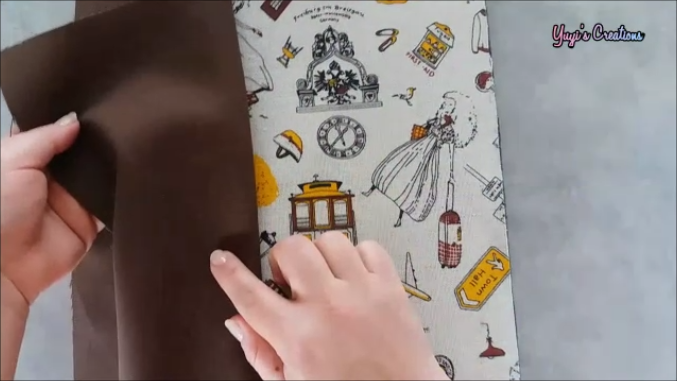 Hecho esto, vamos a colocar encima la tela del forro, juntando los derechos de ambas telas, así: