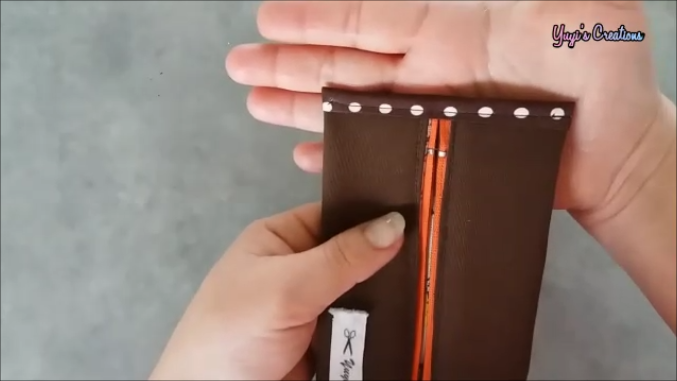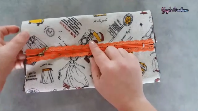 Y cosemos por los lados de los 25 cm, luego damos la vuelta, planchamos para asentar las telas y posicionamos la cremallera tal como vez en la foto: