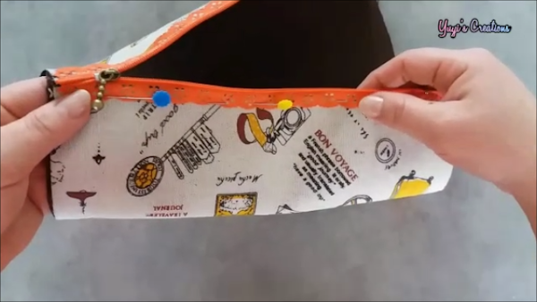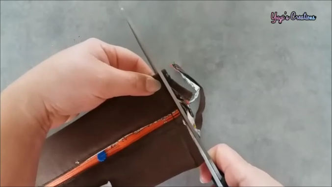 Antes de coser por donde habíamos marcado, abrimos un poco la cremallera para que no se nos dificulte darle la vuelta al neceser; cosemos y luego cortamos el sobrante de tela a 1/2 cm de la costura.