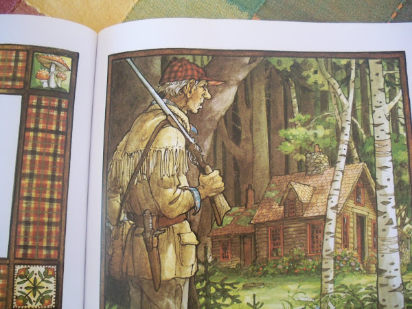 La maravillosa versión ilustrada por Mark Janssen incluye una colcha que aunque no es de cuadritos, opino que sí es de patchwork.