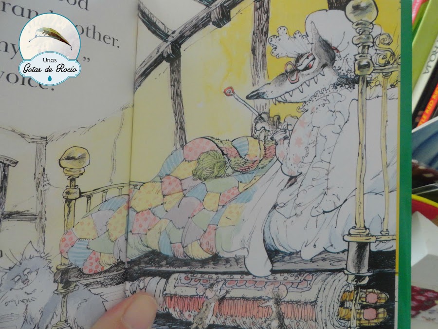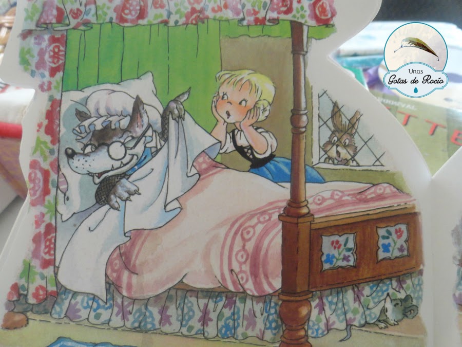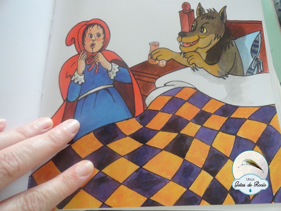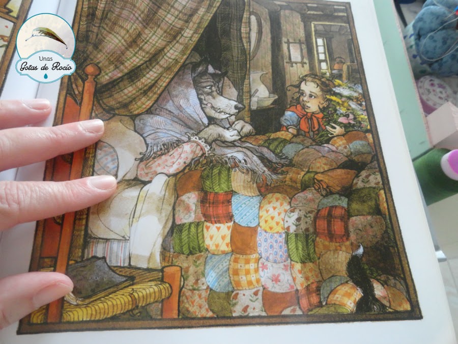 Uno de los cuentos a los que le tengo más cariño y que pertenece a mi madre, de quien heredo el entusiasmo por Caperucita Roja es la de la Editorial Sigmar ilustrada por T. Izawa y S. Hijikata con marionetas, de tal modo que la colcha de la abuela es auténticamente una tela donde se aprecia el patchwork y el acolchado.