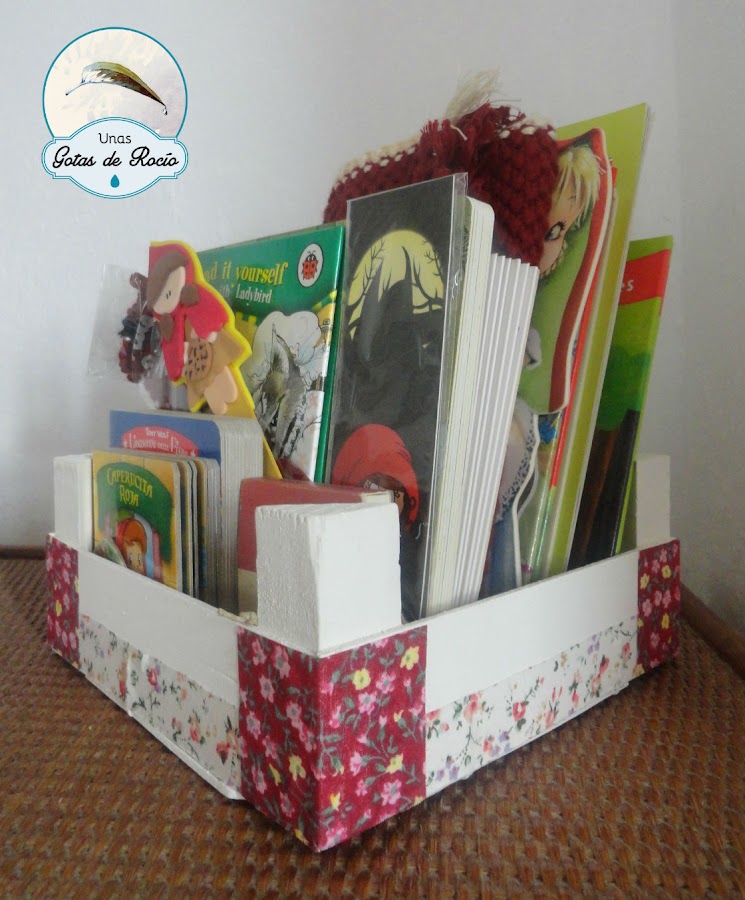 Los cuentos más pequeños caben muy bien así como algunos puntos de lectura y una preciosa colección de sellitos que me regaló mi hermana.