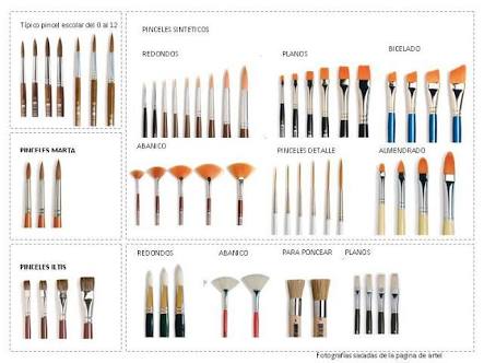 Los mejores son de pelo natural, aunque los sintéticos se adaptan mejor a los disolventes. También en esto se diferencian los mangos, pudiendo ser de aluminio, madera, .... Y de un largo considerable.