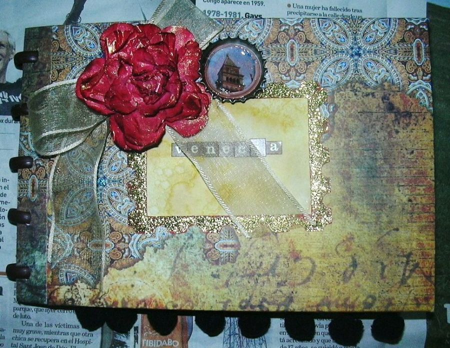 Ruth66 nos presenta uno de sus trabajos favoritos. "Técnicamente tiene un buen acabado. Se puede decir que es buen ejemplo del scrap puro, puesto que hay superposición de papeles. Tiene harmonía en la combinación de sus colores, pero sobre todo representa el espíritu de los foros de Facilisimo, es decir, en torno a una manualidad, un hobby, personas de distintas partes del mundo comparten ideas, creatividad y amistad. Como es el caso de nuestro foro. Gran parte de las chicas más activas elaboraron una tarjeta de cumpleaños y el grosor que alcanzaron todas juntas hizo que las encuadernáramos en dos libretas diferentes. A mí me tocó hacer las portadas de dichas libretas".