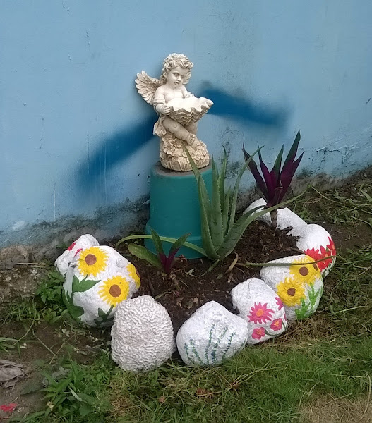 cuando no puedes con las piedras aprovéchalas en algo, pintura e imaginación, una rocalla