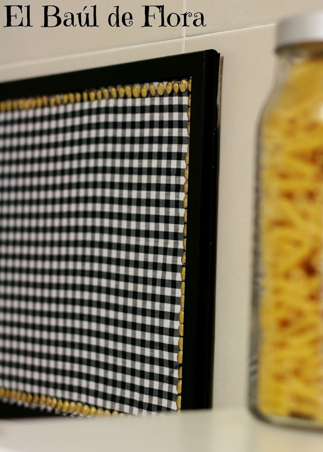 Ya tenemos nuestra pizarra de corcho "deluxe" terminada, sólo queda colgarla en el lugar elegido, en mi caso ha sido la cocina.