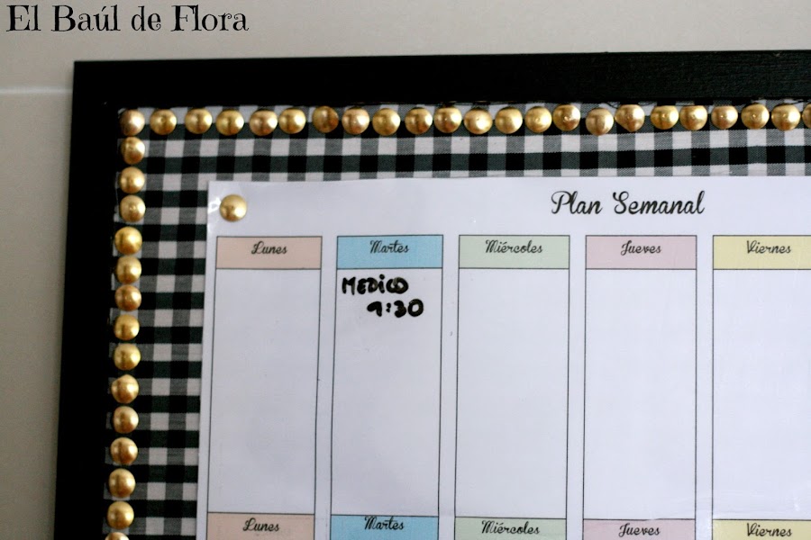 Pinchamos la hoja en nuestra elegante pizarra y ya tenemos nuestro plan Semanal. Si os apetece podéis añadir algún adorno o frase inspiradora.