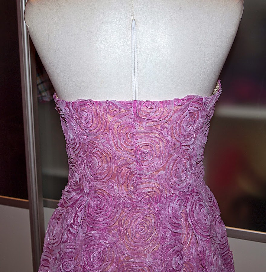 Bueno y ahora os cuento mi odisea con el vestuario seleccionado en mi cabeza para el evento. Mi primera idea fue una falda vaporosa en seda salvaje con rosas y lentejuelas bordadas en color oro viejo (falda que ya esta hecha), junto a un corsé color crudo con un solo hombro y drapeado a la cintura, y este fue el que me robo mi paciencia, lo tengo montado pero sin terminar, no terminaba de verlo la cremallera a la espalda no conseguía que quedase perfecta, al tener tanta curva lumbar me hacia una arruga y no había manera de que me quedase como yo quería, se me echaba el tiempo encima y lo que tenia entre manos no me convencía, hasta que decidí dejarlo aparcado y terminarlo mas adelante con mas tranquilidad, total no tenia necesidad de ir a disgusto ni de pillarme malos ratos tampoco.