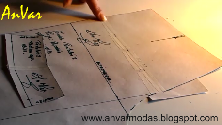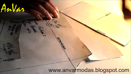 4) Luego de aplicar los centímetros que nececitamos, ubicamos sobre la marca la parte superior del molde...