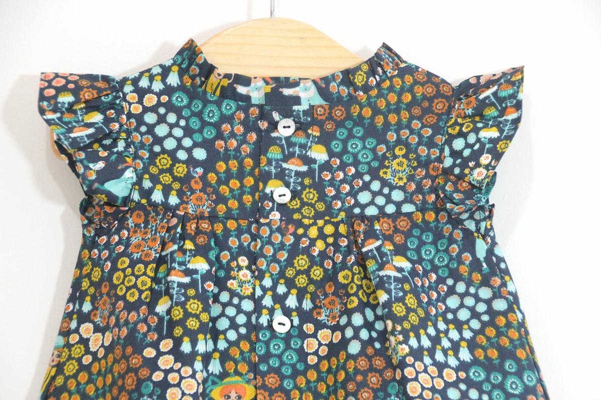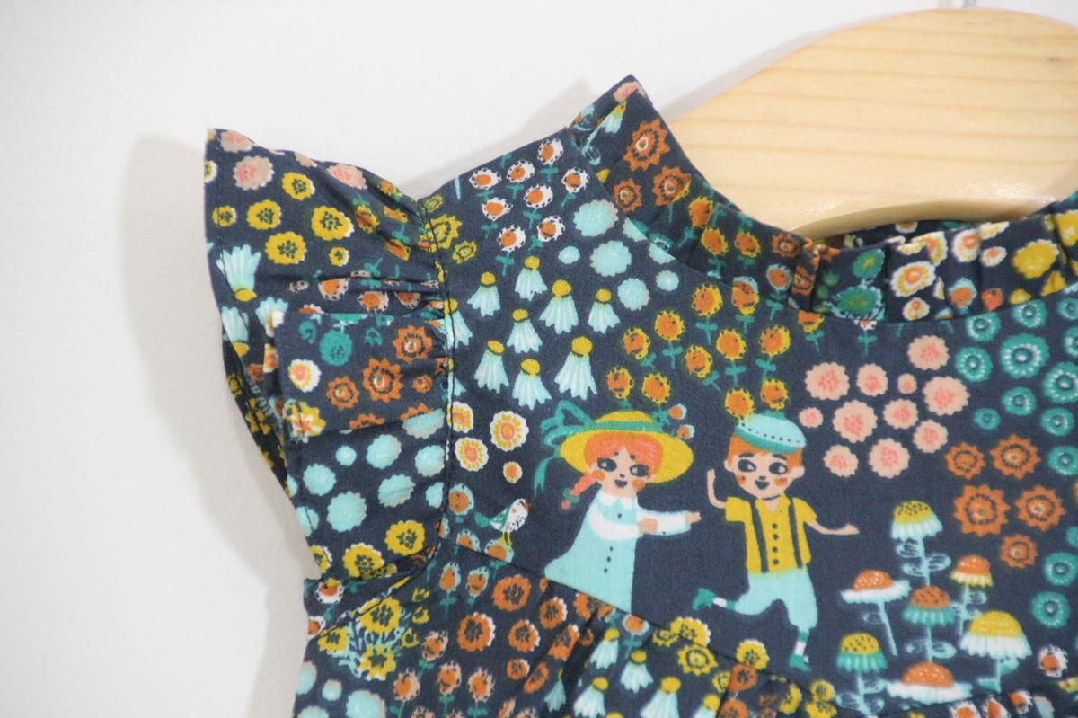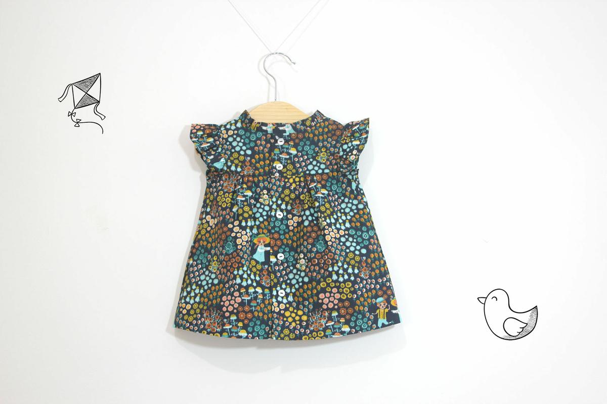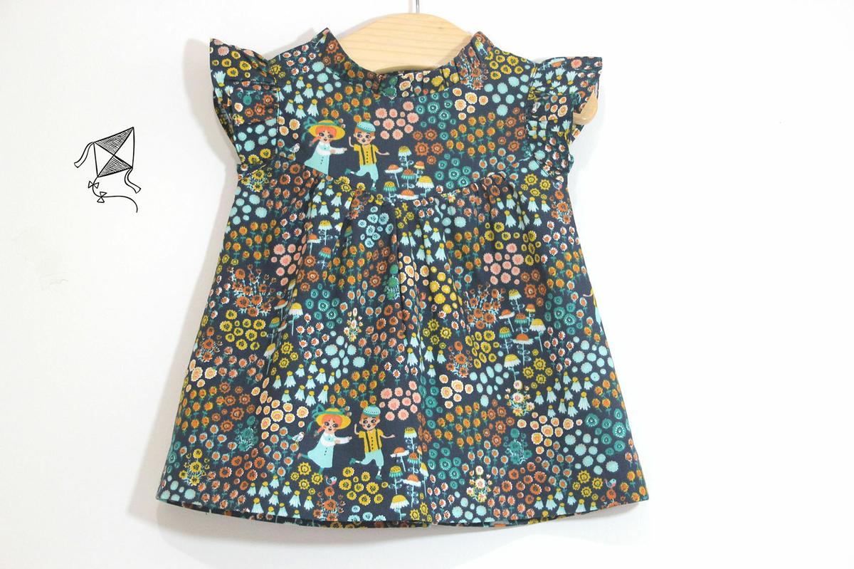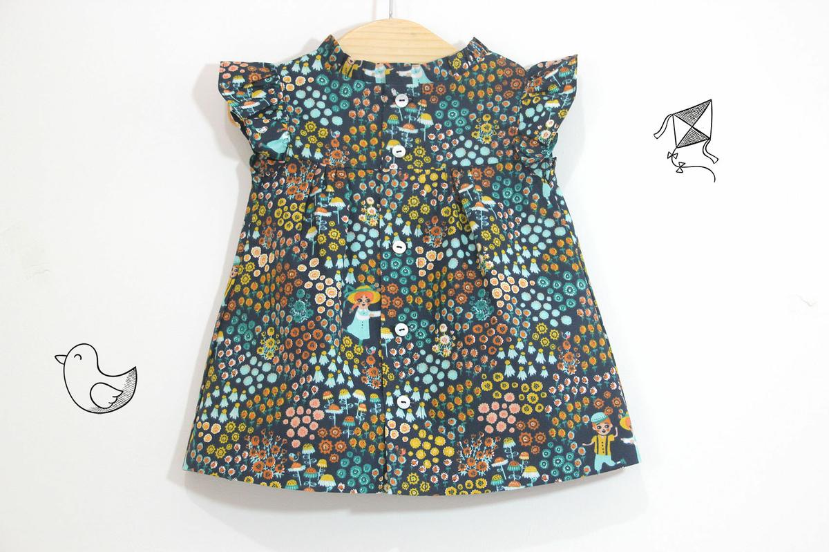 En esta ocasión os traigo un vestidito con volantes en las mangas y cuello levantado que se lleva tanto esta temporada. Además la tela es un algodón con un estampado súper original y diferente Así que el resultado me encanta!!! Espero que os guste a vosotras también y que os animéis a hacerlo porque es muy muy fácil!!!
