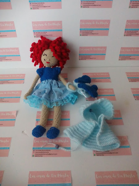 Hoy nos quiere enseñar un bonito vestido de estrellas con sus zapatos a juego, como abrigo ha elegido una capa azul cielo con capucha y como complemento una mochila con orejas y rabito de conejo en el mismo tono. ¿Estáis preparadas para verlo?.