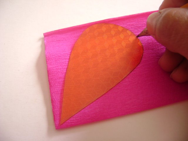 Traspasar los moldes de los pétalos al crepé, según el tamaño de cada hoja se cortará la cantidad requerida.