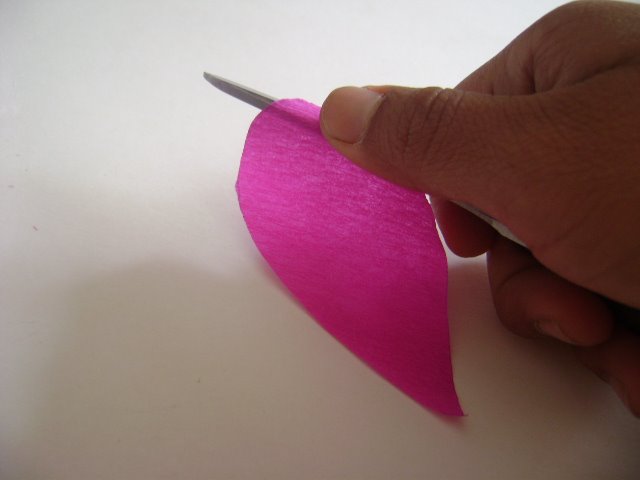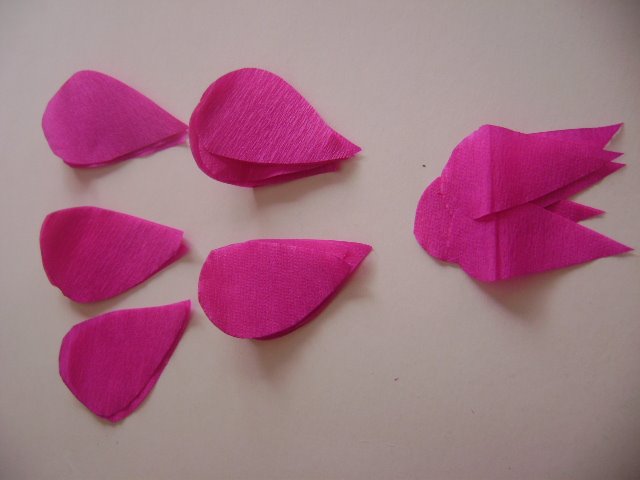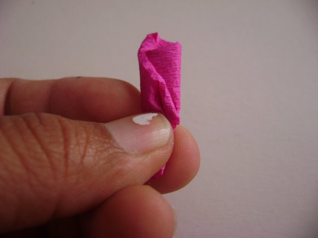 A cada pétalo se le hace pliegues en la parte inferior como se aprecia en la imagen.