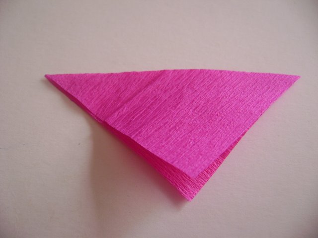 A continuación, con el cuadrado de crepé se dobla en forma triangular.