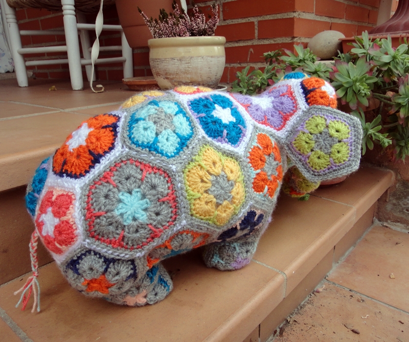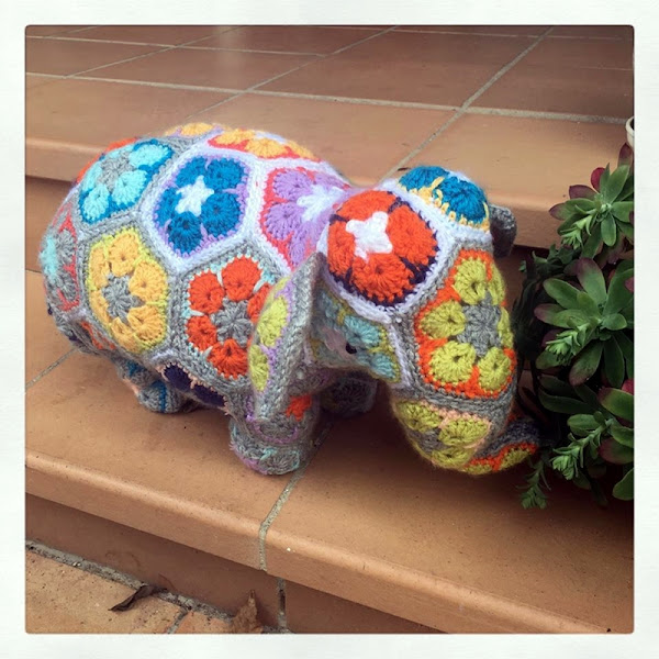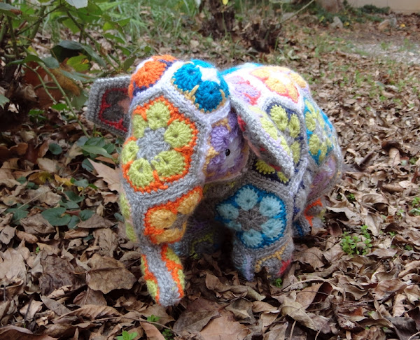 Buscando por Pinterest encontré este simpático elefante. Que mejor que el rey de la sabana para una labor de flores africanas.