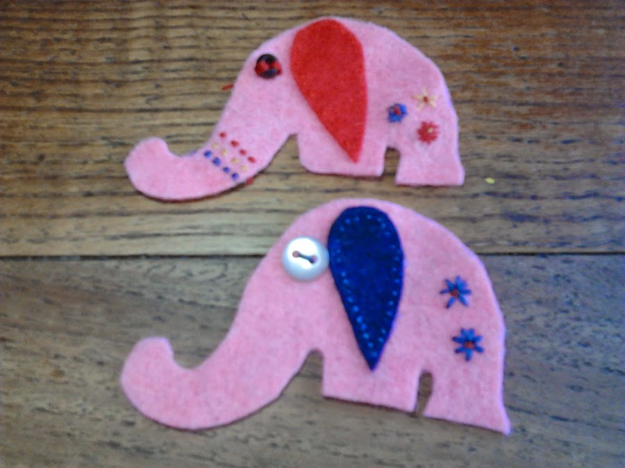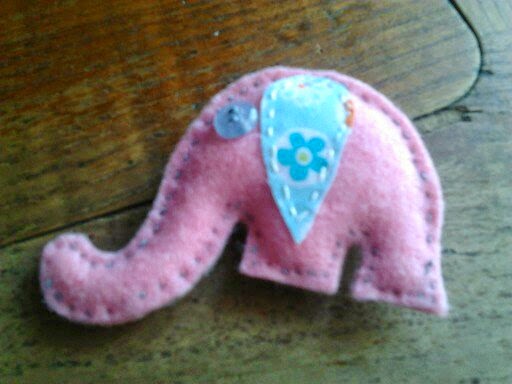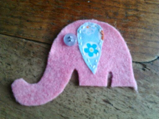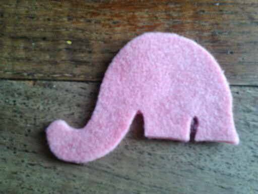 he cortado dos elefantes. Uno será la parte superior que irá decorada y otro la parte trasera donde coseré el cierre del broche y que no se verá.