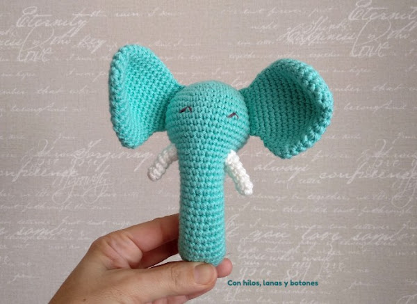 ¿Os acordáis de la conejita Lola y de Toby the Triclops? Os los presenté a principios de diciembre y os comenté que eran regalos para unos hermanos. Faltaba el regalito del tercer hermano, el pequeño de la camada. ¿Y a él qué le tocó? Pues un elefante sonajero.