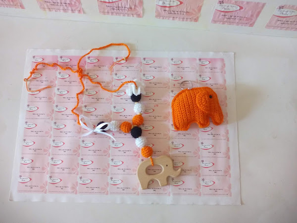 Hoy traigo una manta de apego en forma de elefante, sonajero, collar de lactancia, llavero y chuoetero,....un conjunto muy completo para hacer dar la bienvenida a un recién nacido.