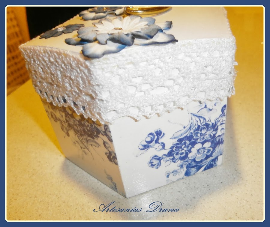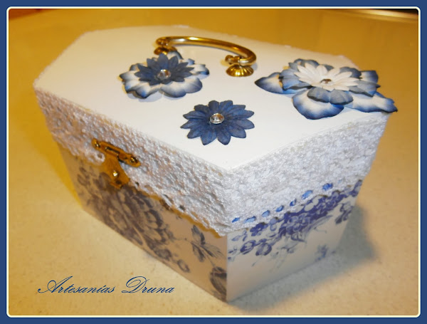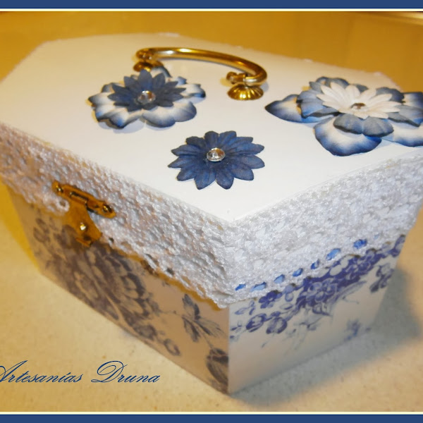 Esta cajita de madera me la consiguió mi querida Mar, y se fue para mi querida Mamen. Está realizada con acrílicas, entelada con doble faz y stencil.También va decorada con tela de arpillería barnizad ...