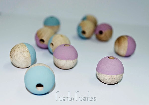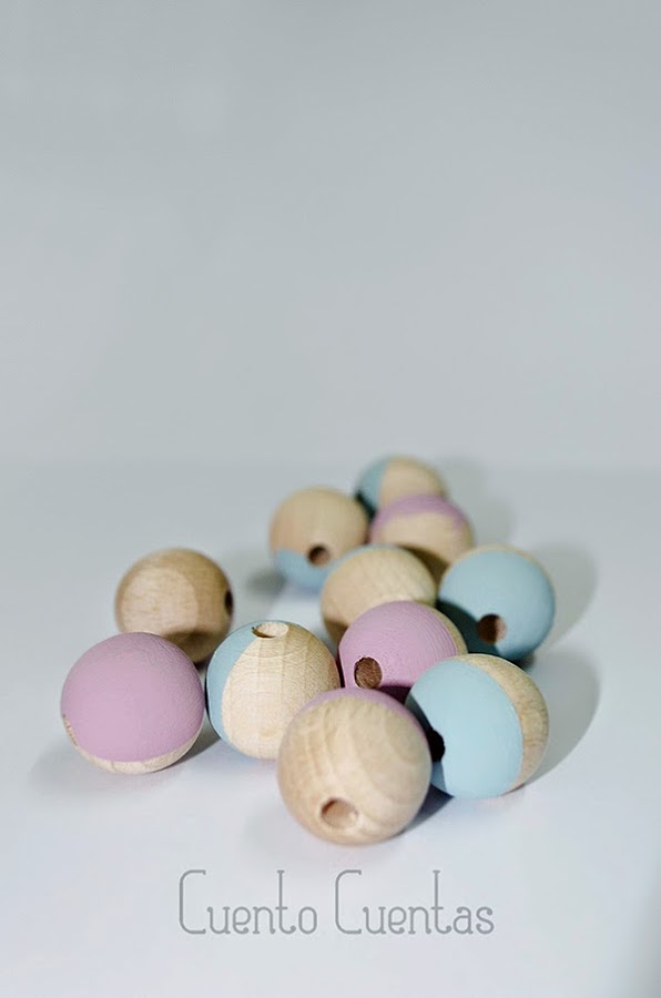 Elegimos dos colores pastel, azul y rosa, y la verdad es que los tonos nos han gustado mucho, aquí podéis ver cómo quedaron las cuentas una vez secas.