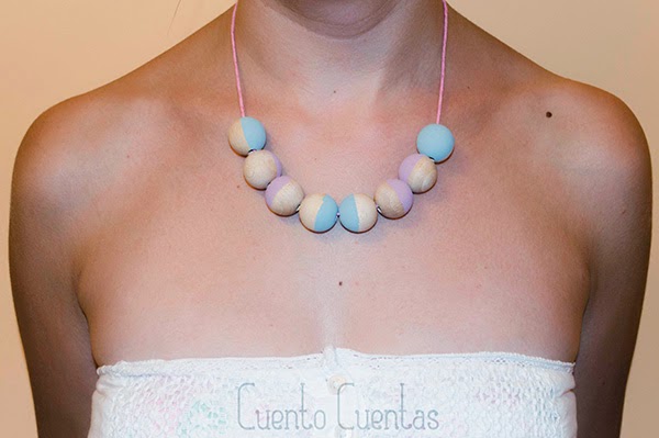 La propuesta de este mes era hacer un collar de bolas, y nos ha venido genial, porque teníamos unas cuentas de madera esperando su momento, así que mira, ¡las hemos aprovechado para este reto!