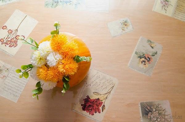 Bien, pues aquí tenéis nuestra propuesta. No puede ser más sencilla. Sólo necesitamos una calabaza y unas flores. :)