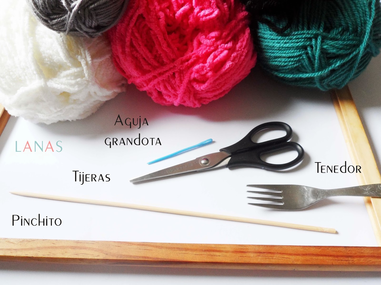El tenedor, para ir subiendo la lana hacia arriba, y que quede toda apretada :)