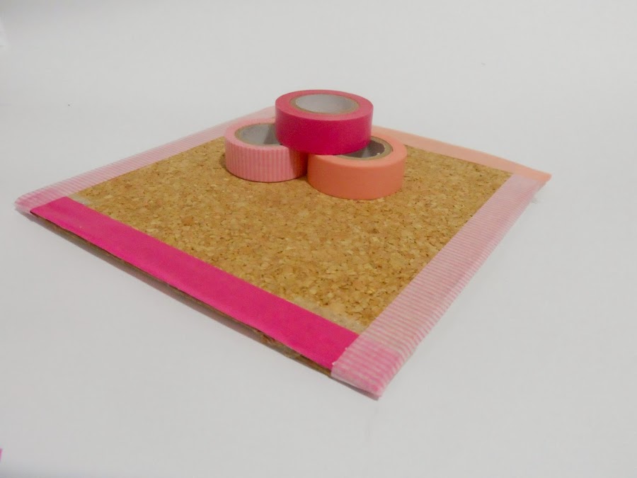 1. Con el Washi hacemos un marco alrededor del corcho, en mi caso, cuadrado :)