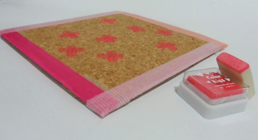 Yo usé como sello el lateral de una goma de borrar, e hice cruces rosas.