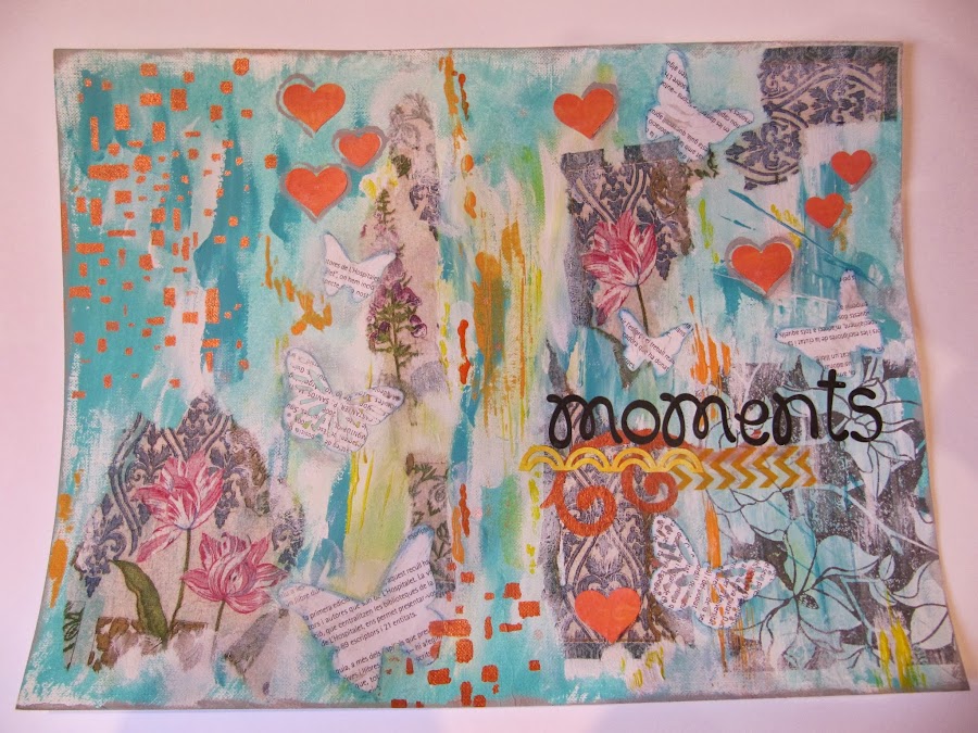 Llevo unos días bastante ocupados, sin tiempo de scrapear, y en una noche inquieta que a veces tiene una!, me levante de la cama sin pensar en el frio o que podía estar algo loquilla, fui directa a mi mesa de trabajo y me puse a lo que saliese, sin nada en mente, así me dieron las tantas, casi la hora de levantarme, sin darme cuenta se me paso el tiempo en nada, mi cabeza dejo de pensar, solo veía colores y una evasión total!