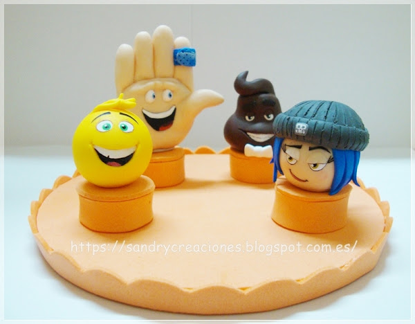 En base a esto, nosotros decidimos hacer un adorno pensado para ponerlo como decoración en pasteles o tartas de alguna fiesta de cumpleaños u otra ocasión especial ambientada en la temática de emojis, concretamente en la película: "Emoji: La película". Para ello estuvimos indagando sobre los personajes de esta película y nos decidimos por 4 de los que suelen estar presentes en el cartel de la película, concretamente: Rebelde, Choca esos 5, Gene y Caca.