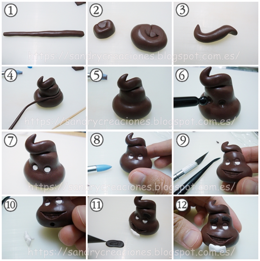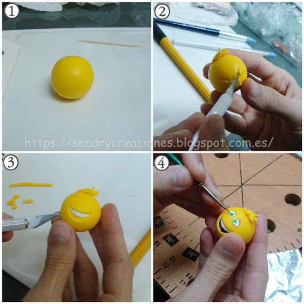 Para mostraros el procedimiento que seguimos a la hora de realizar cada uno de los emojis que escogimos lo vamos a hacer de forma individual, destacando los aspectos de cada uno pero un poco a grandes rasgos, pues como os hemos contados en algunas de nuestras entradas en pastas poliméricas cuando hacemos algo por primera vez se nos hace muy difícil reproducir exactamente cada uno de los pasos.