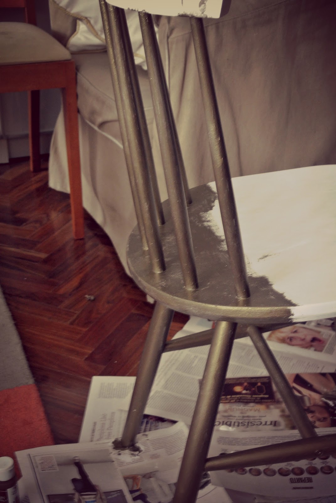 Y como hace tanta calor, se secó enseguida y la empezamos a pintar. Color bronce.