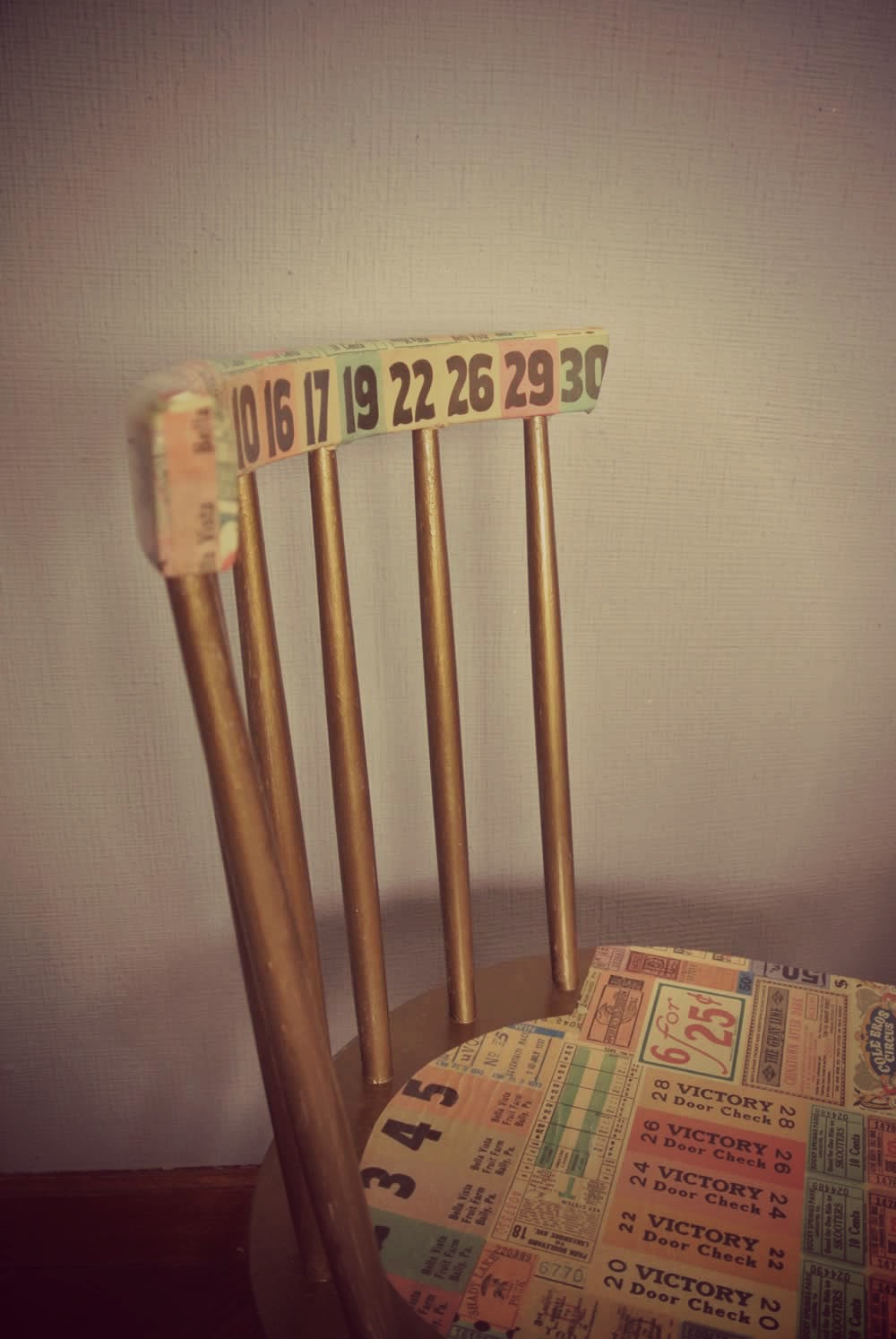 Luego elegimos el papel. Nos gustó este que me acababa de llegar. Lo pegamos con cola blanca diluida con un poquito con agua y una vez seco todo, barnizamos toda la silla.