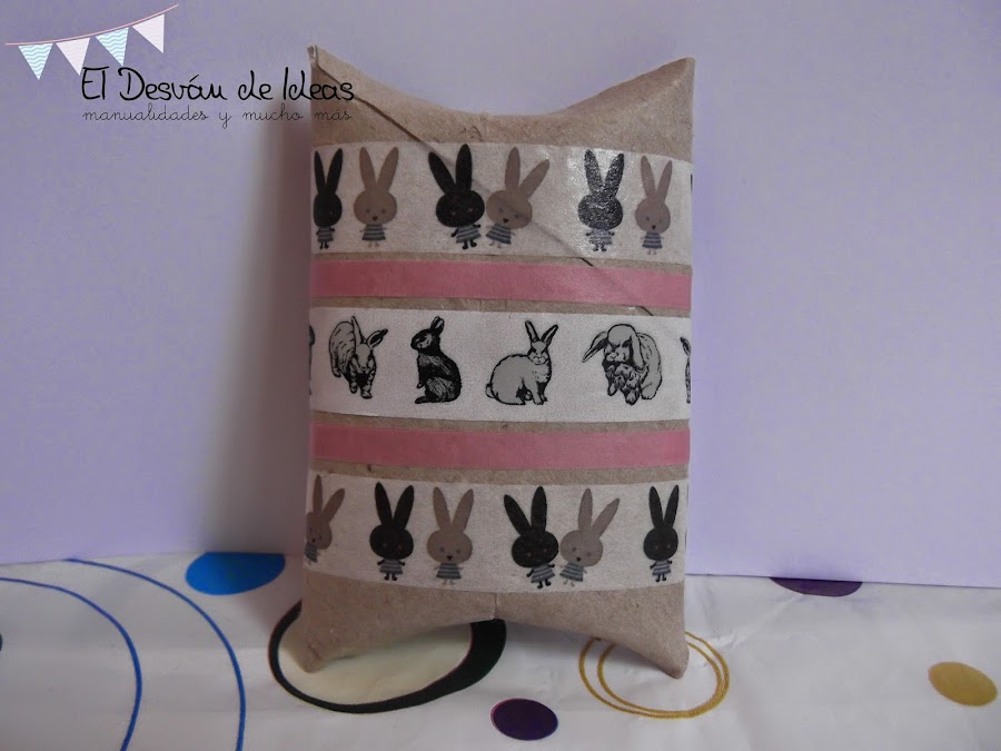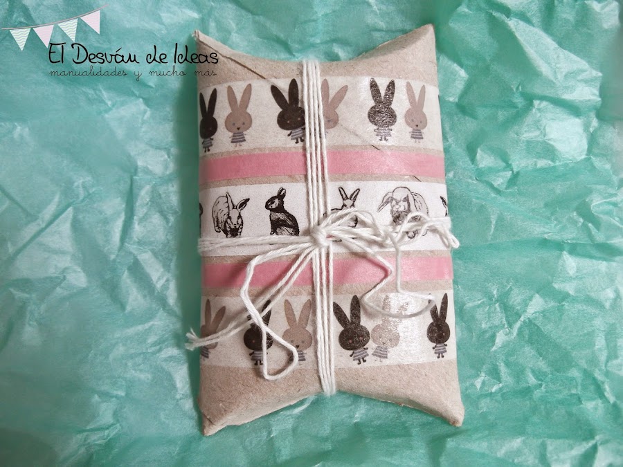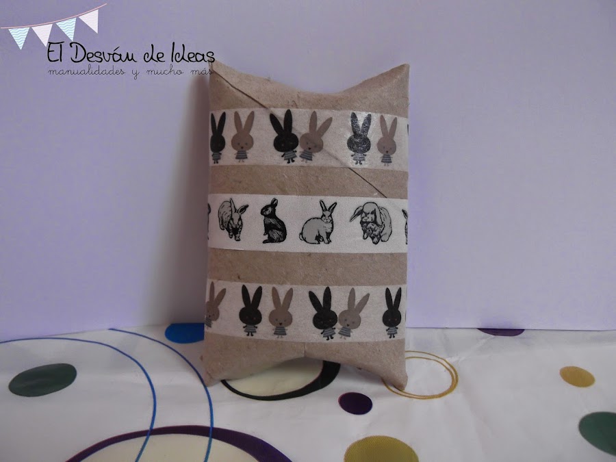 En cuanto vi la propuesta, se me vinieron muchísimas ideas a la cabeza, que si convertir un rollo en un conejito (yo mi locura por estos orejones jajaja), en un búho (ví ideas por internet)... pero al final he ido a lo fácil y así aprovechaba para envolver un regalito que tengo que enviar (de la semana que viene no pasa, te lo prometo Tere)