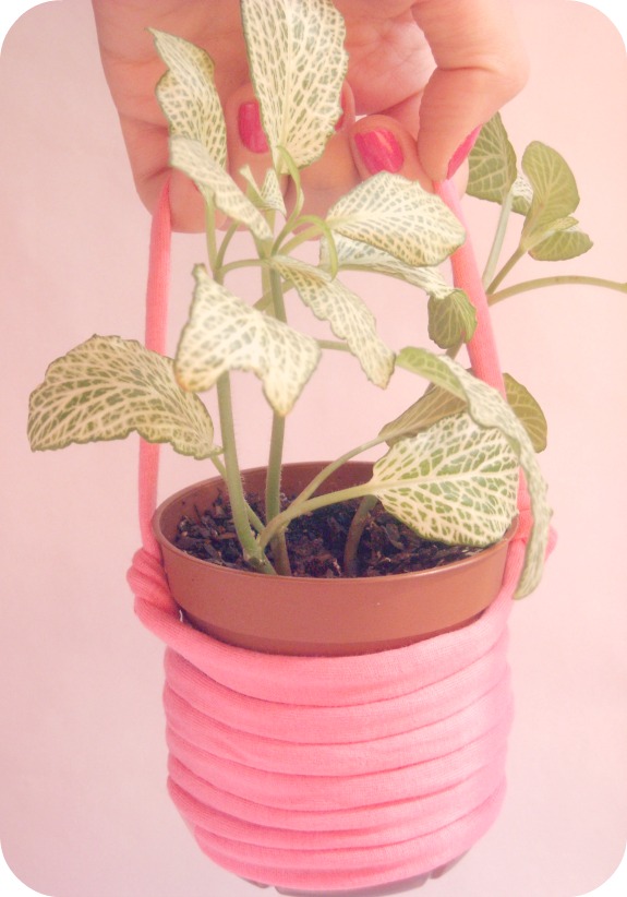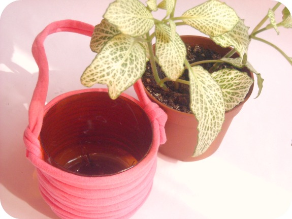 Cuando tengáis toda la botella forrada hacéis un nudo para cerrar y hacer el asa. Dejáis una hebra del largo que deseáis para el asa y hacéis otro nudo en el lado contrario y listo!!! ya tenemos nuestra cestita terminada ideal para regalar una planta :)