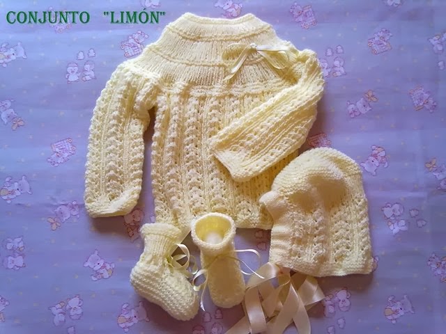 No se me está dando mal y con la profe que tengo, que tiene más paciencia que un santo, es muy fácil aprender. Desde aquí la quiero dar las gracias a Charo porque me está ayudando muchísimo, sin ella no sería capaz de hacer esto y quiero poner en valor las obras de arte que hace con punto, aquí os enseño un conjunto para bebé que hizo hace un par de años: