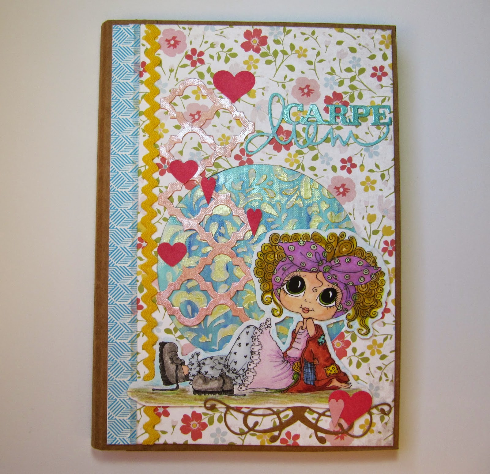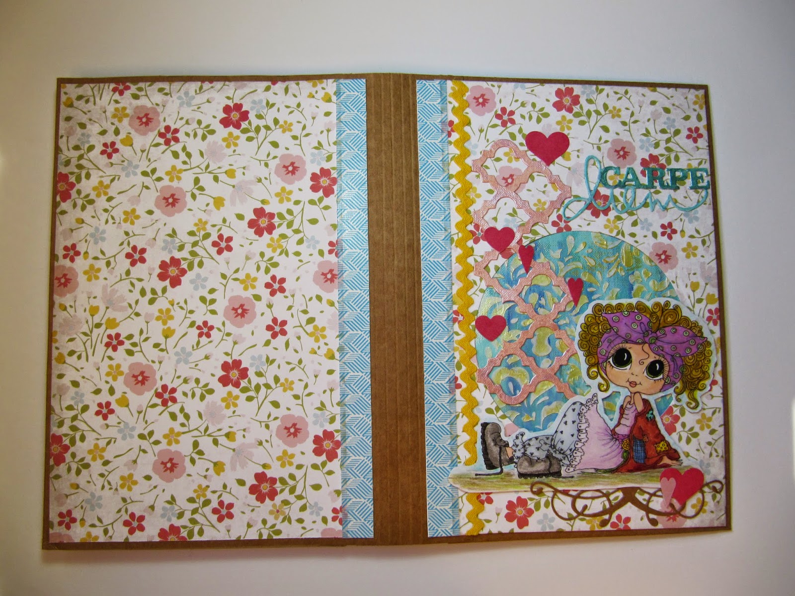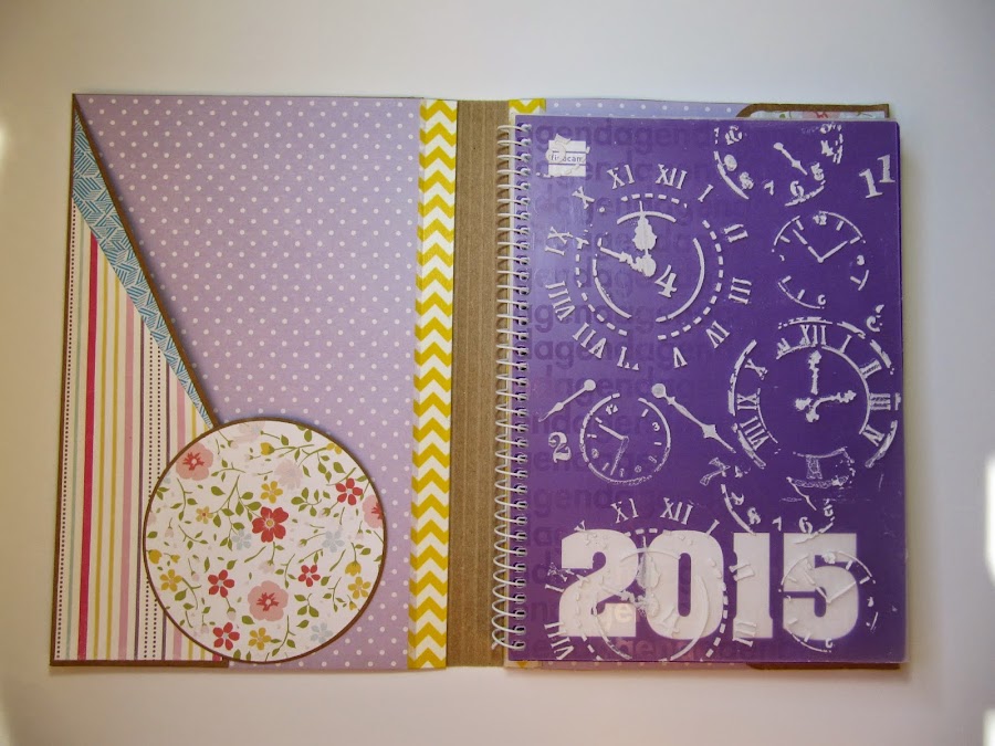 Colores y papeles dulces y alegres, con una pizquita romántica, en una base de cartón kraft, un par de bolsillos interiores (que nunca va mal), he utilizado pasta de relieve en el circulo troquelado de la portada y también en la tapa principal de la agenda que es de plástico duro, las palabras de un troquel que compre en Creativa, que me encanta!!, y para terminar siendo la protagonista un sello digital de My Bestie Spanih Challenge, con él que me apunto a su reto con mi versión de su sketch