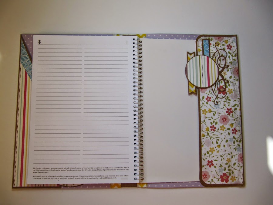 No se vosotras pero a mi todo o casi todo que llegan a mis manos, mis ojos miran el objeto con ojos scraperos!!, pues es lo que me paso cuando tuve que elegir una agenda, quería que fuese practica para mi, pero tan poco que no se me fuera de presupuesto, elegí una que vi que su interior estaba bien, muy bonita no lo es!, pero total el año que viene hay que elegir otra!, por lo que decidí que le haría una funda, mi cabeza scrapera en funcionamiento!!
