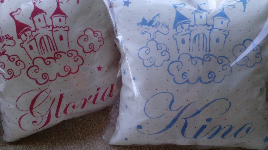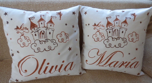 Estos para unas hermanas que duermen juntas. Los querían en color caramelo y marrón.....con el castillo y sus nombres.